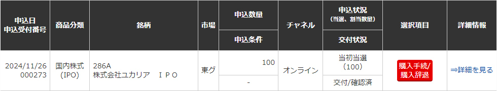 三菱UFJモルガン・スタンレー証券から100株、SBI証券から400株当選しました。 おまけにSBI証券から補欠が900株。 当選しすぎて怖~い。 三菱はペナルティがあるので購入したけど、SBIはどうする? GOする?