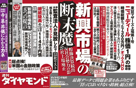 新興市場から断末魔の叫びが聞こえる。昨年1月から現在にかけて27社が上場廃止となり、今後も数百社単位の淘汰は避けられない。最新データを通じて、あらゆる角度から新興市場に巣喰う問題企業をあぶり出し、信頼回復に向けて何をなすべきかを問う。