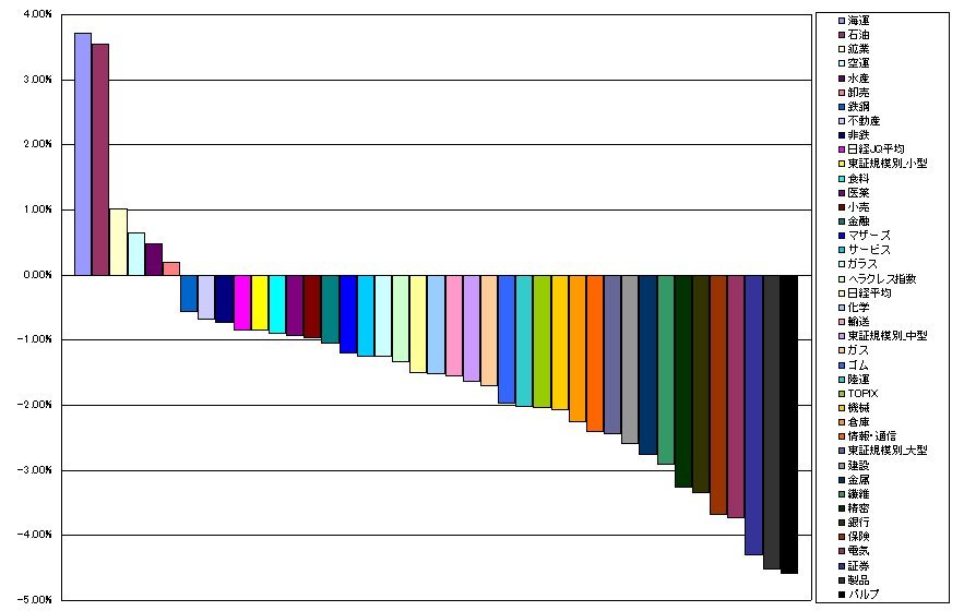 34.繊維-2.91% (-0.14%)