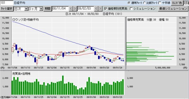 ・なかなかいい材料が出てこない為、決算発表や外部要因での下落が続き、3日続落でしたが、昨日はザラ場で7,800円を切りましたが、
