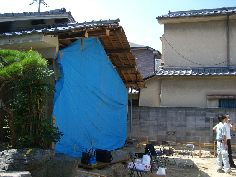 解体してわかったのが、既存建物の再利用部分が、図面より40cm新築予定地寄りに建っており(図面の誤り)新築部の計画に変更が必要になり、現場で、施工者と建築家さんが頭を抱えておりました。このようなケースは、建替えだと日常茶飯事だそうで、難なく変更プランを作成されていました。