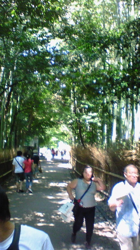 嵐山名物の竹のトンネル(写真中央、人が写っていたのでぼかしてあります)を抜け、清涼寺(注3)を通ります。