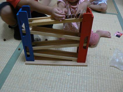 1号♂、2号♂、3号♀が拾ってきたどんぐりで遊んでたら