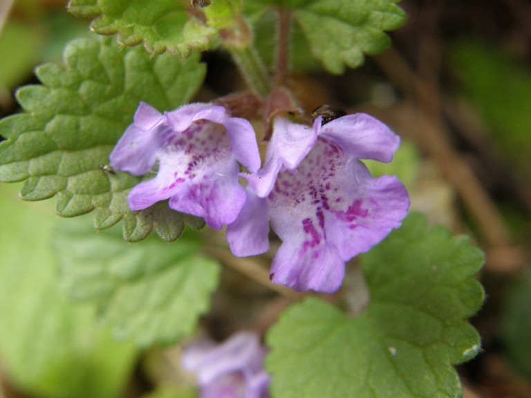 花は左から、タチツボスミレ(すみれ科)、カキドオシ(しそ科)、クサイチゴ(ばら科)