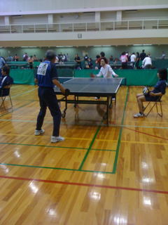 「第一回F21卓球交流会」は1チーム三人の団体戦。約150名の選手が参加して、午前中は4チームの予選リーグ、午後は決勝トーナメントが行われた。