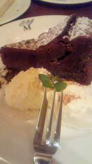 >そして、おなかいっぱいで、デザートはやめようという話になったのですが、折角なので皆で分けようという事で、ガトーショコラ。
