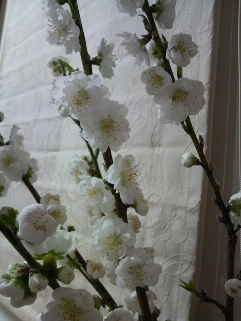 近所の方がつぼみのたくさんついた桃の枝を持ってきてくださいました。