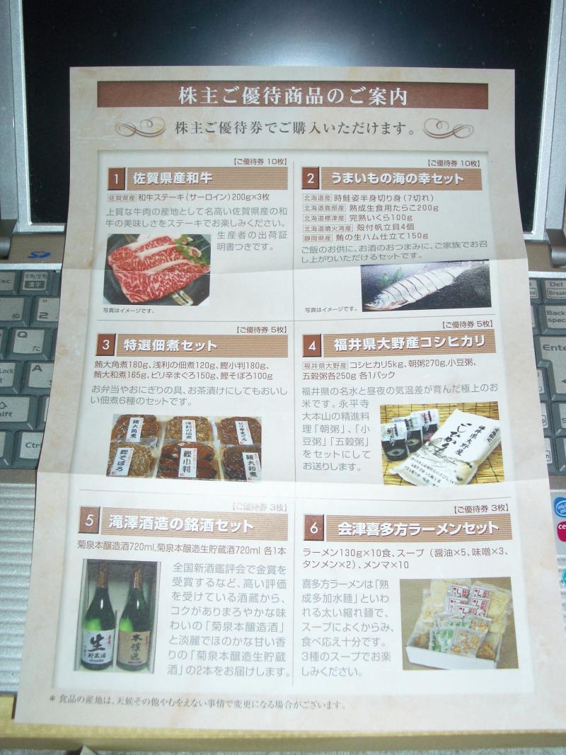 年4回分で4万円分と言う優待利回りは非常に美味しく、近くに店舗が無くてもチケット返送で写真の商品をもらう事がお出来ますからお得なのですが…