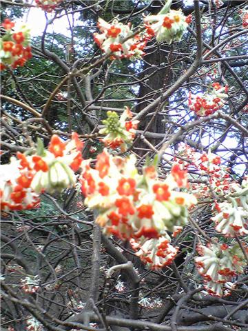 白鳥庭園のミツマタが満開です。