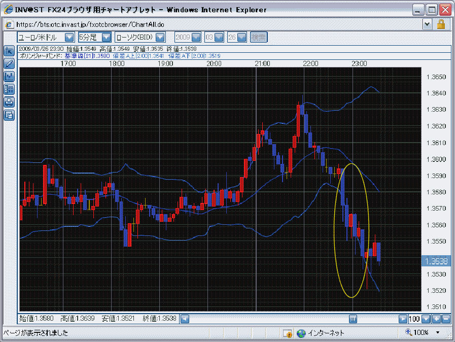 下ヒゲを出しながら、ボリバン-2σに沿って下落。