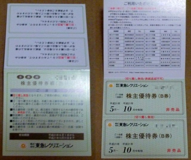 本日(9631)東急レクリエーションの株主優待が到着しました。