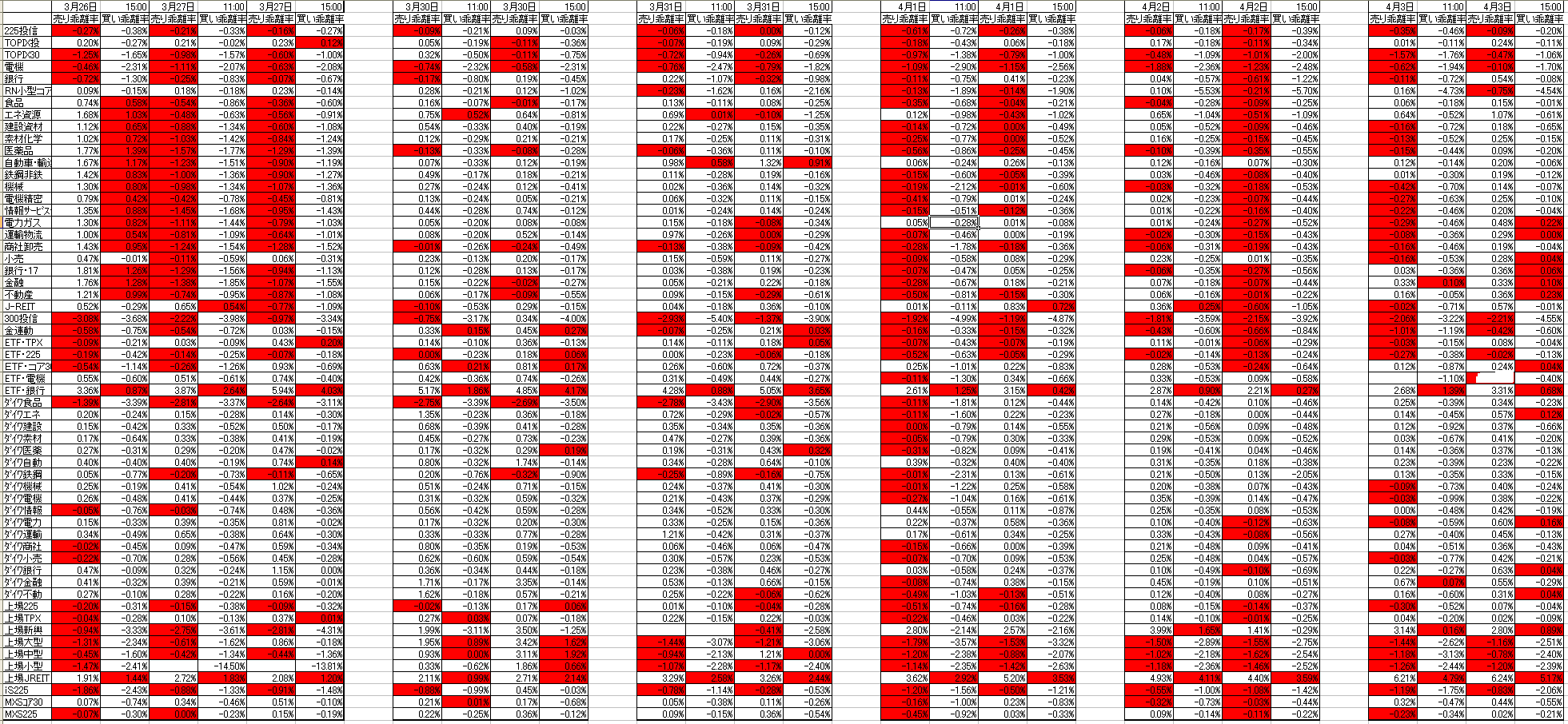 26日と27日の野村の17業種別ETFはいつもより安かったので、こういう記録をとりました。引けに指数が跳ねたわけではありません。ザラ場も安かったのです。