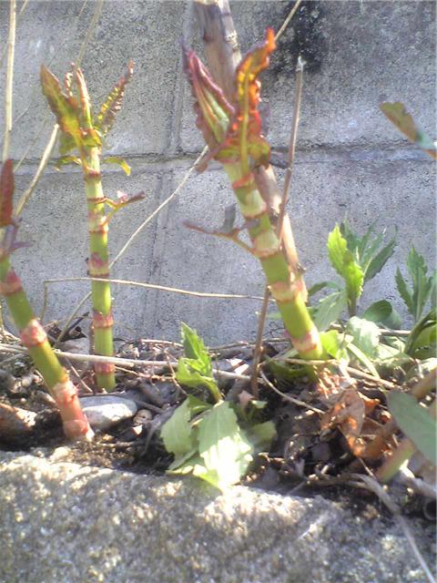 山菜のイタドリが出てきています。都会でもまだこんなものが出てきます。