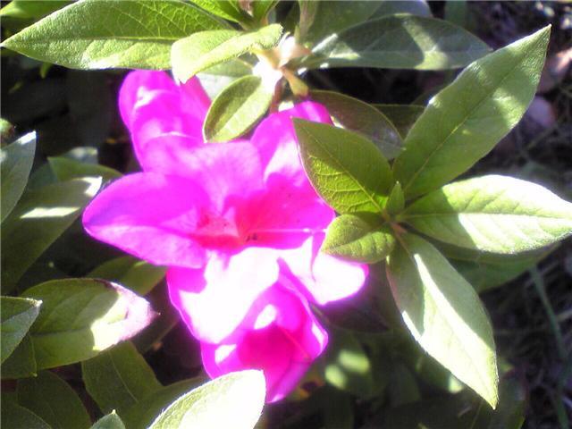 ヒラドツツジの一種のオオムラサキツツジが咲き始めた。もう6月の陽気になってきて一気に咲き始めた。山に行けば色々な花が見えそうだ。朝日がまぶしい。
