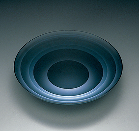 質の違うガラスのあいだの光の反射具合で皿自体が発光しているように写りとても綺麗でした。