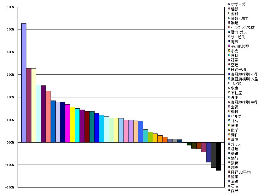 1.マザーズ 5.27%(-0.26%)