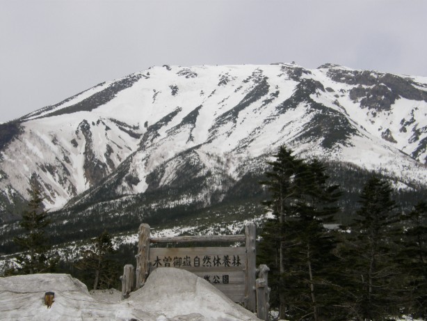 左から、開田高原から望む御嶽山の全容。御嶽山七合目から山頂を望む(山頂が見えていませんが)。御嶽山の七合目手前より中央アルプスを望む。