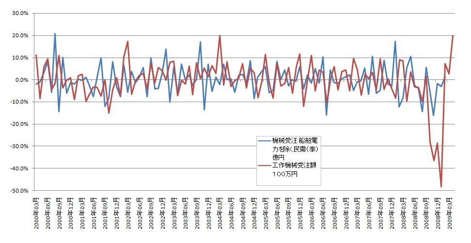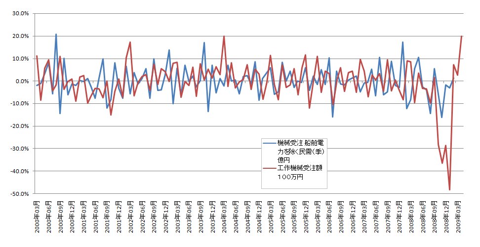 機械受注2月分までのデータと工作機械受注の4月分までの