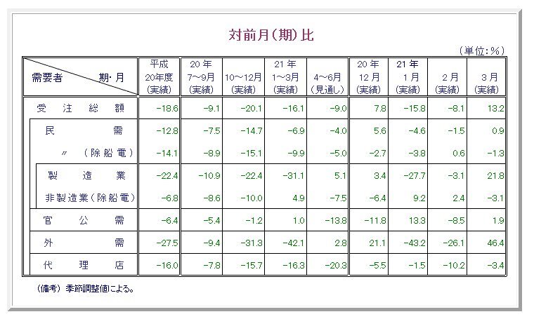 民間設備投資の先行指標である「船舶・電力を除く民需」の動向を見ると、21年2月前月比0.6%増の後、3月は同1.3%減の7,279億円となった。このうち、製造業は同21.8%増の2,567億円、非製造業(除く船舶・電力)は同3.1%減の4,965億円となった。
