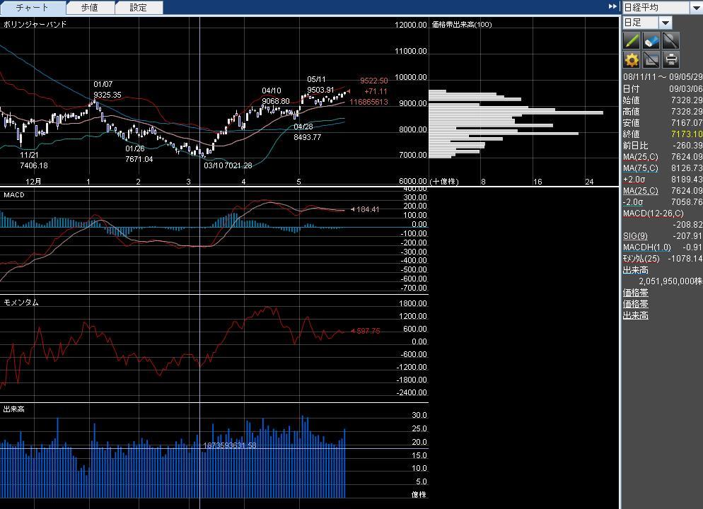 【解説!?】[日経平均 9,225.81(9,265.02)]()は1週前