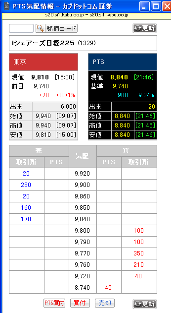 iShares225ETF(1329)が大幅安