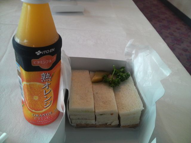 映画は13:00~上映(12:30開場)っと言う事で。時間までは株主向けの控え室で写真右のジュースとサンドイッチのセットをご馳走になりました(^^)