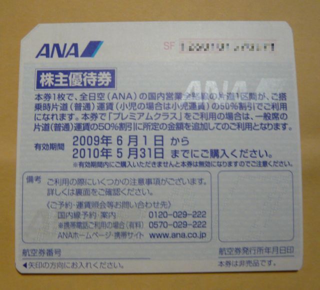 優待券は1枚につき国内ANA路線が50%OFFになり、繁忙期も利用できます。