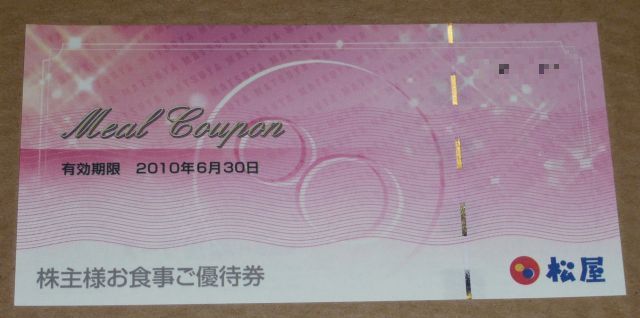 写真は今回分の優待券で有効期限は2010年6月30日までです。