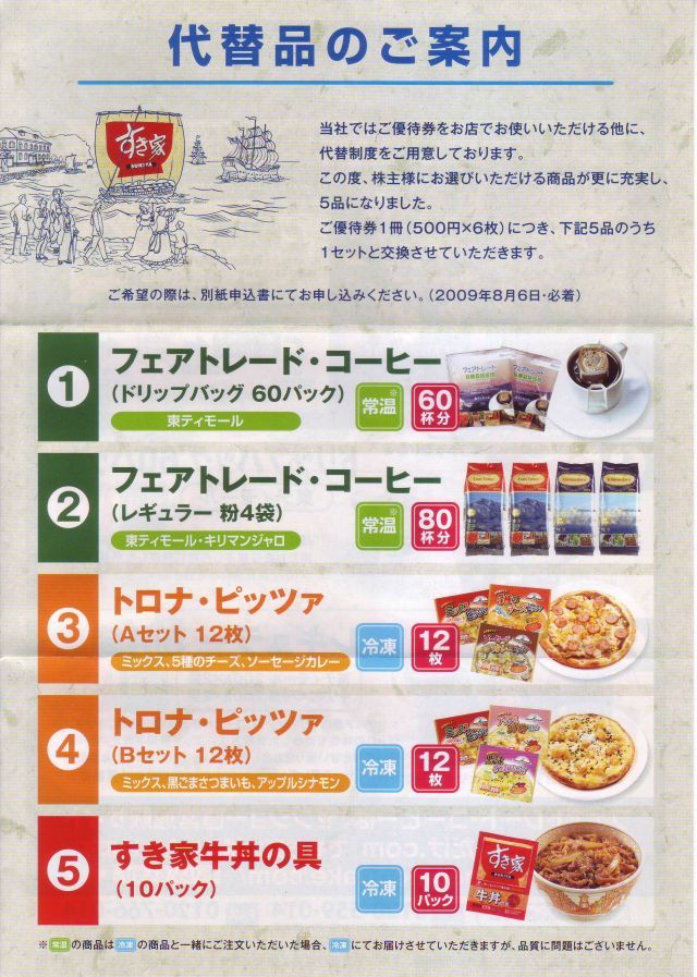 『すき家』『なか卯』『COCO'S』『Jolly Pasta』『Fracasso』『BigBoy』『Millky Way』『Victoria Station』『華屋与兵衛』『EL-TORITO』『手打ちうどん久兵衛屋』『ウエンディーズ』『はま寿司』『牛庵』『焼肉倶楽部いちばん』『宝島』になります。