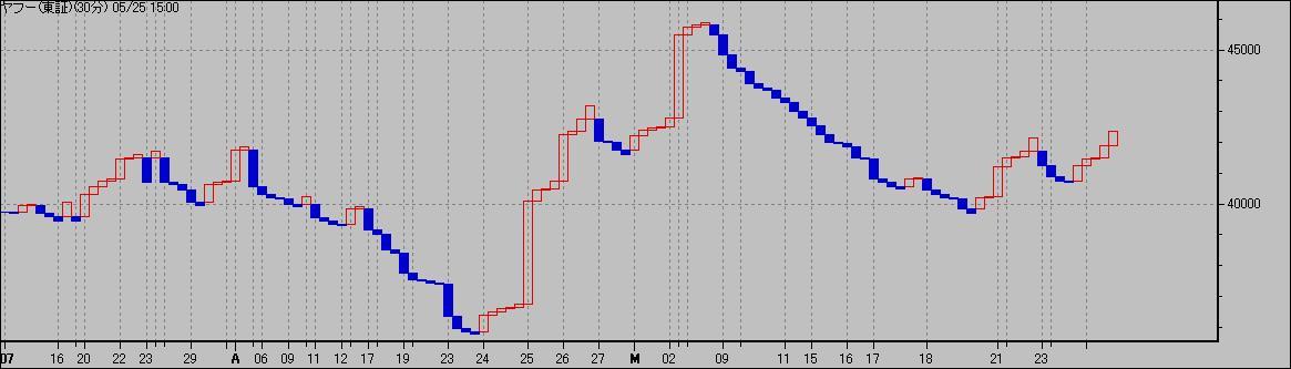 下値切り上げての上抜けなので当然前回高値46,000超えを目指すのでしょうが、44,000円あたりにいくつか抵抗線がみられます。1トレンドで達成できるかが注目ですね。