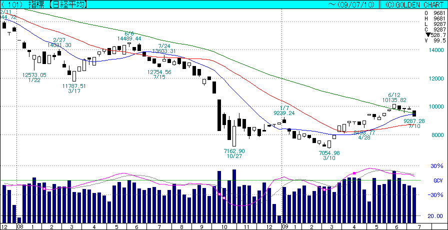 今週はまず週足が陽転、もしくは転換サインがでるかどうか、引き続き様子見の週かと存じまする。¥9,200、¥9,000、200日線、26週線と、果たしてどこで下げ止まるか、まずは下値の確認が肝要でござりましょう。
