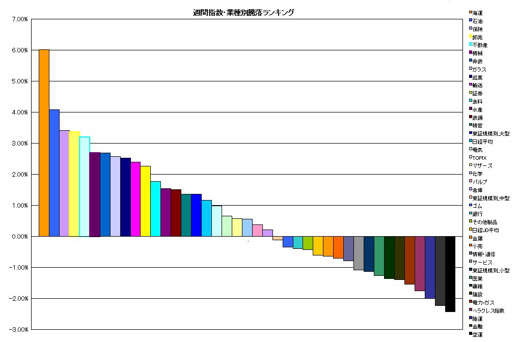 週間 指数・業種別騰落ランキング
