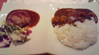 私の組み合わせは、ハンバーグとシーフードカレーです。