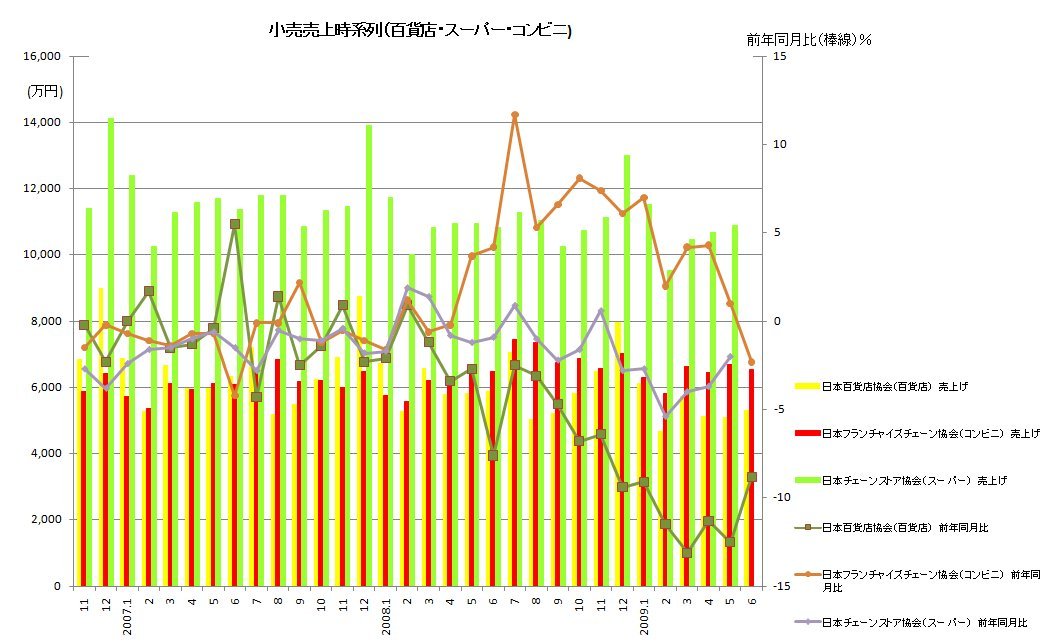 6月の百貨店とコンビニエンスストアの売上高の速報が