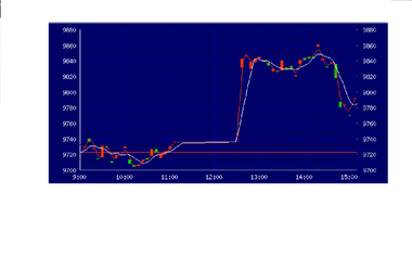 このために、前場は小動きに終始していた日経平均株価は、後場に大きく上昇して、2時半過ぎには138円高まで上げ幅を拡大しました。大引けにかけては手じまいに押されたものの、69.78円、0.72%の上昇となりました。