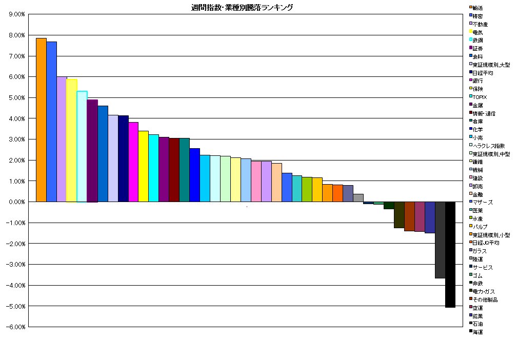週間 指数・業種別騰落ランキング