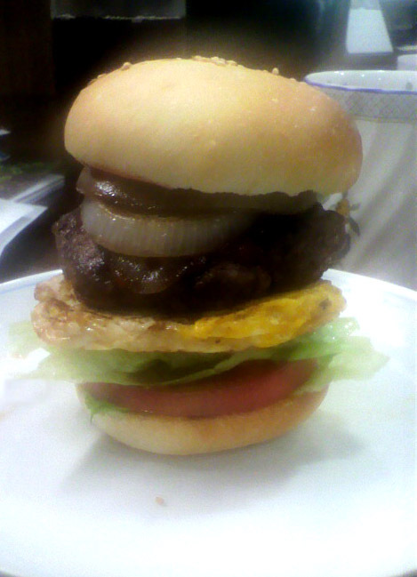スペッシアルバーガー(^^)、欲望の言うままにいろいろサンドしていたらこんな風になってしまいました。