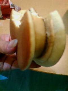 名前のとおりどら焼き(あんこは入ってないです)の間に2センチくらいの厚さのプリンが挟まってました。
