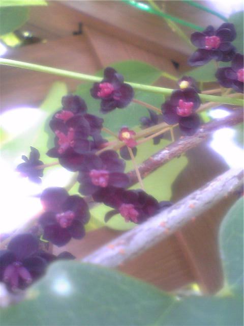 もう10cmぐらいになっている実もぶら下がっているとなりの枝で、花が沢山咲いています。