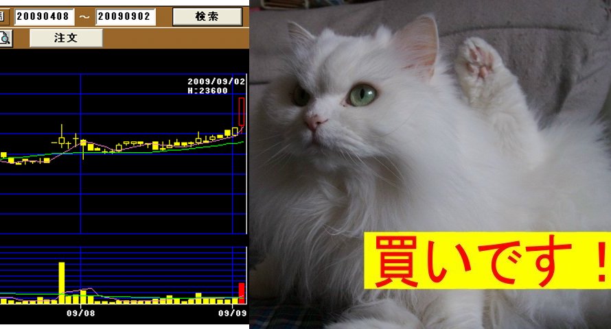 手持ちは無い。しかたなく、少し評価損の株を1株、売り実行。数分後、その株が買い気配!あれよあれよとS高張りつき