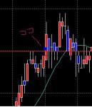 上図のエントリーポイントで買い仕掛けるも、