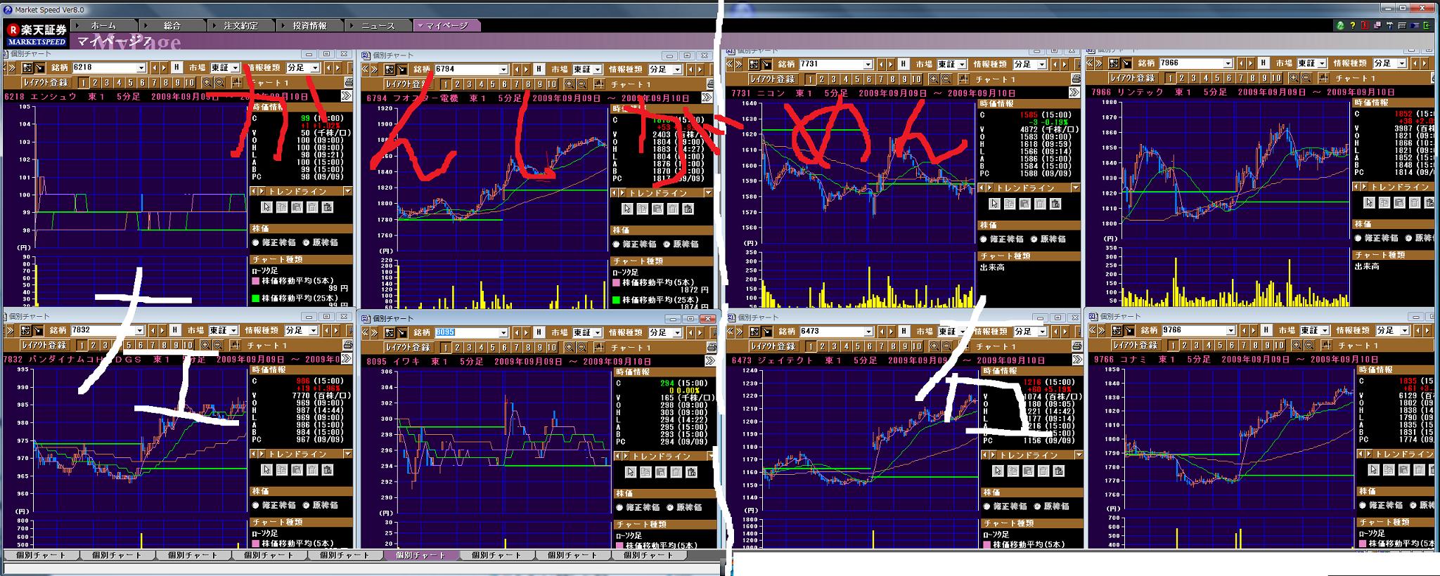 あと24インチのモニター2台になったんでマイページに8つチャートを表示さしてます!