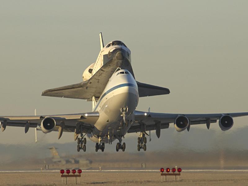 画像はジャンボに乗って運ばれるシャトル。日本航空はこんな感じか?