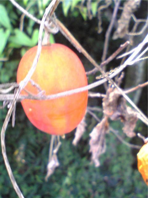 秋, カラスウリ, ハイキング:秋の野山にハイキングに行くと池の周りには、このカラスウリがぶら下がっています。昔ながらの風景です。