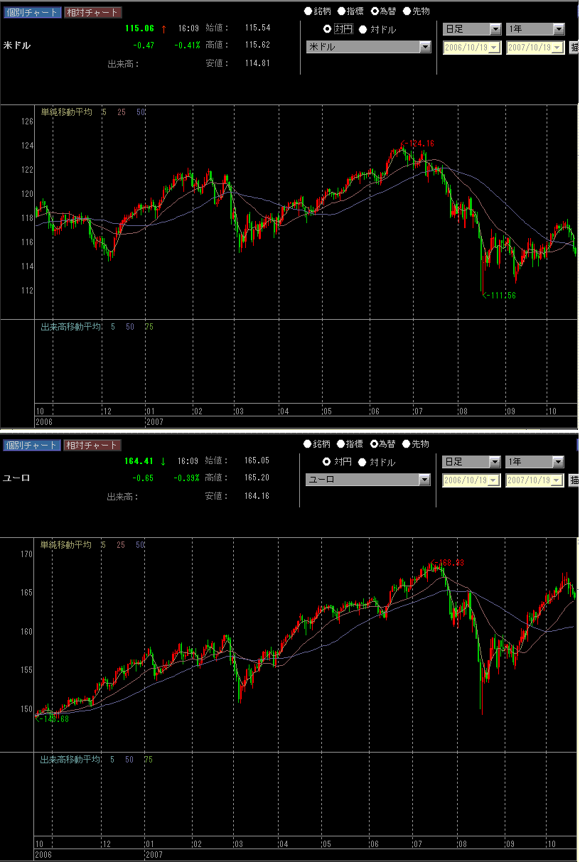 ユーロ高、ドル安、 円高、ドル安とかなりドルの信用が