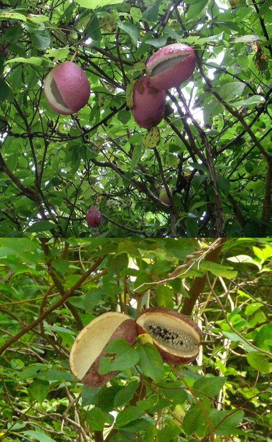 アケビが熟し、開いた様子は、親にまとわりつく、わるい子を選別し、新天地で働く子をよい子とする、共存共栄の優れた戦略を思わせます。