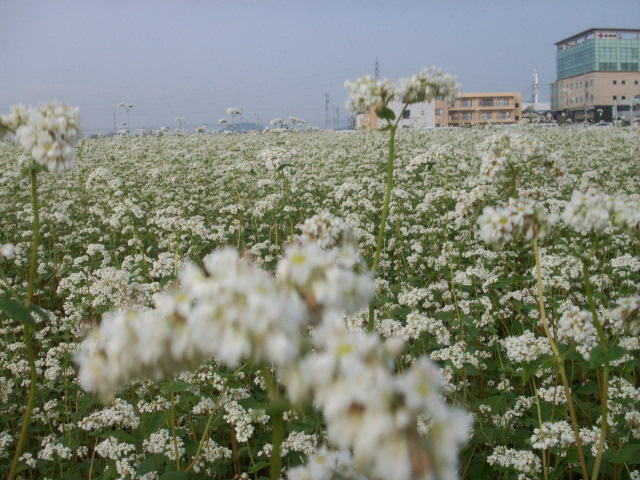 ソバの花が満開です。そばを栽培する農家が増えてます。