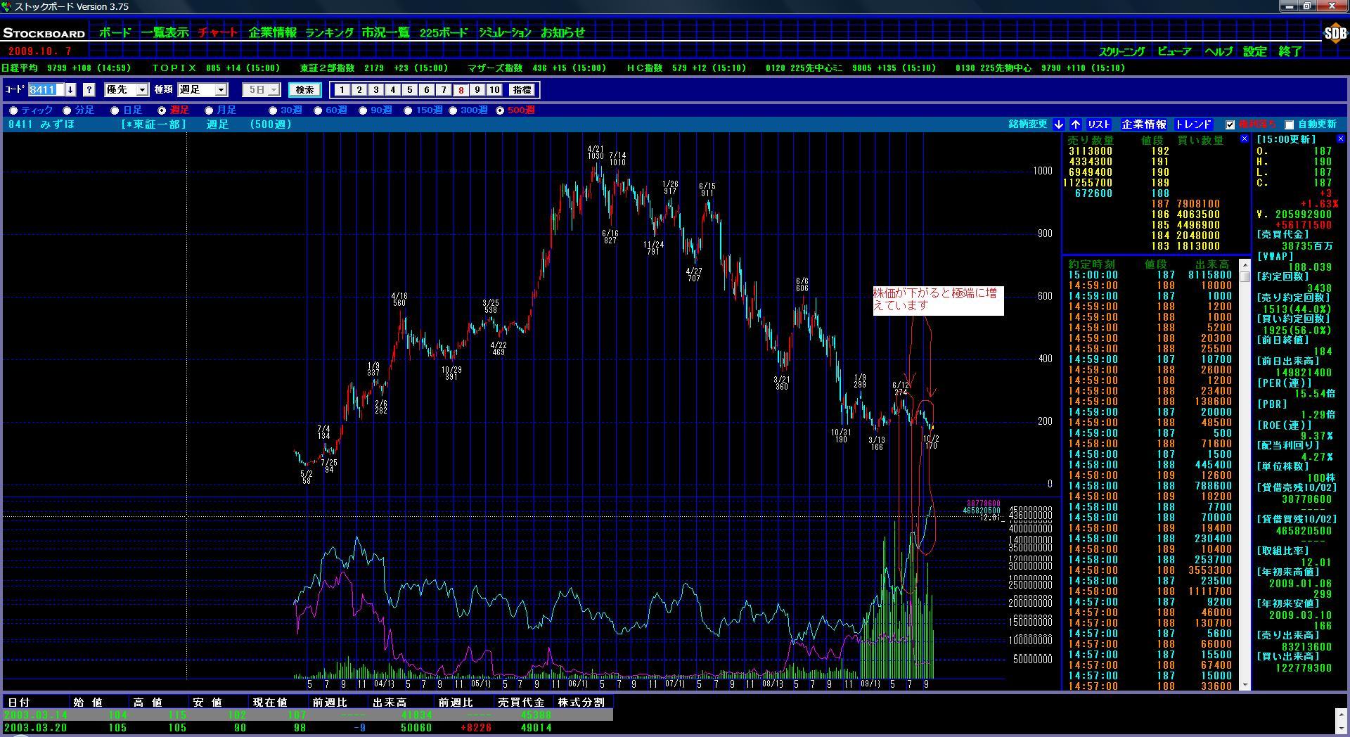 極端な例だったのですが、全般にこういう傾向があるんですよねえ。次回は下がった株が買いではない理由について書いてみたいと思いますよ~~^^