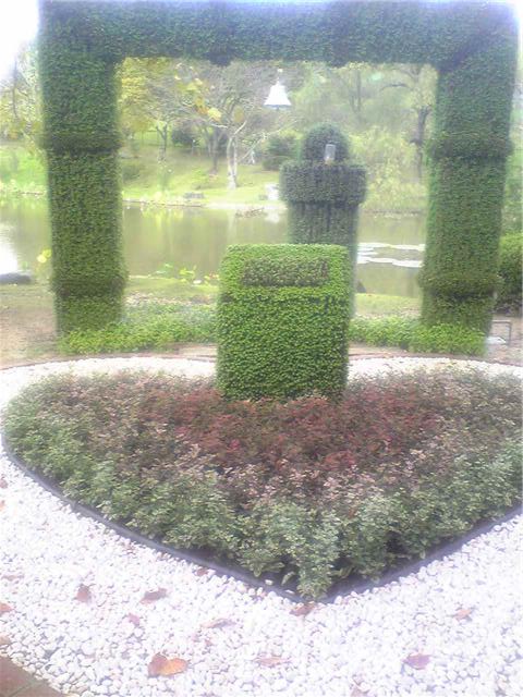 ネットに小さい花や、つたやハーブなどを貼り付けているようです。