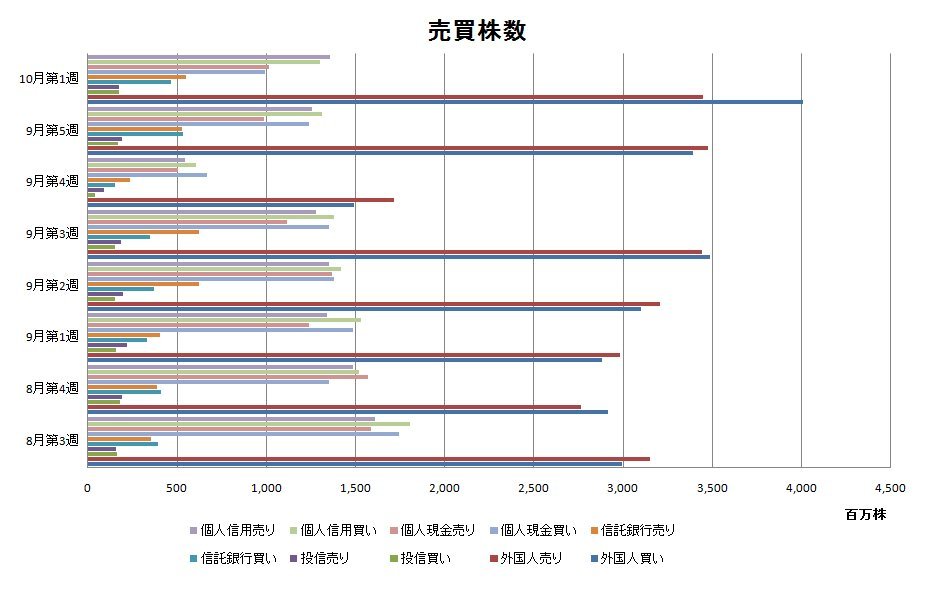 外国人投資家は5億6千2百万株、4991億円の買い越し